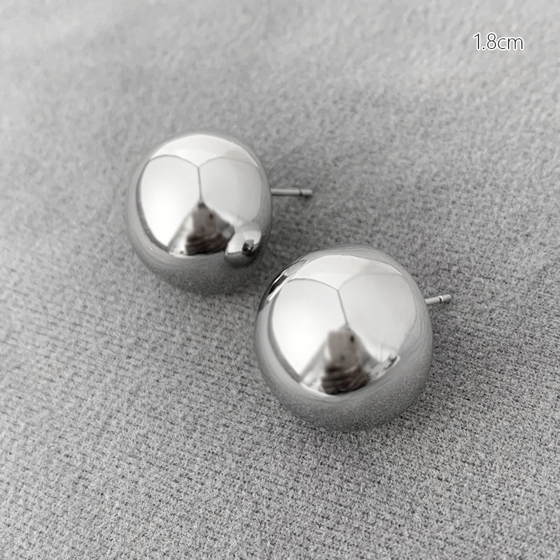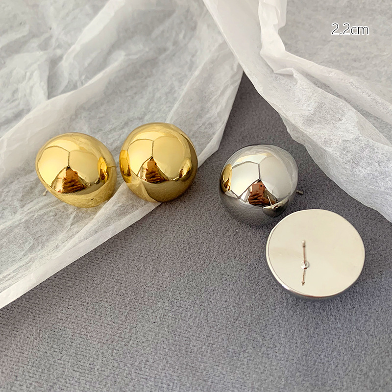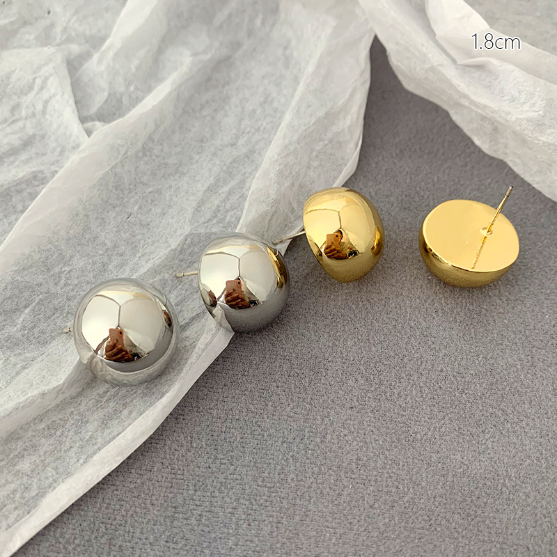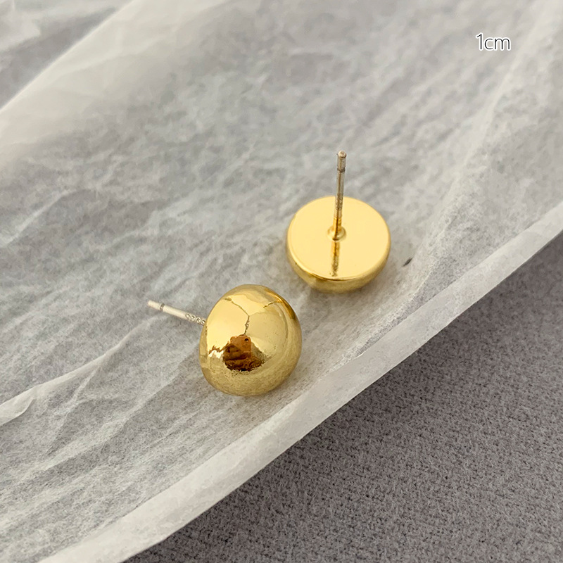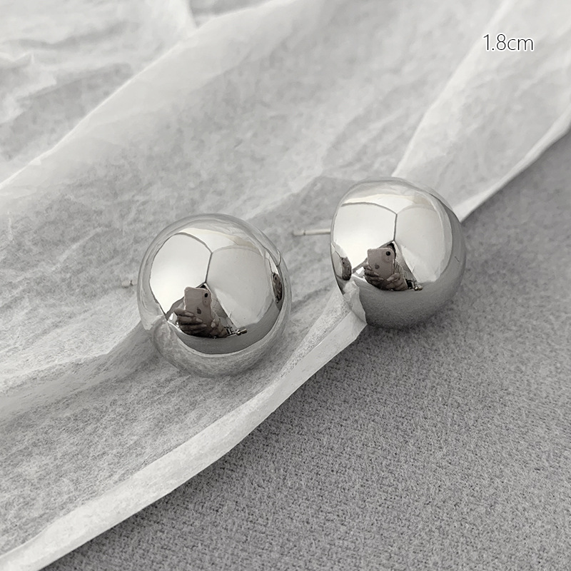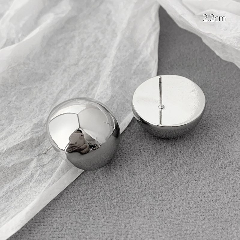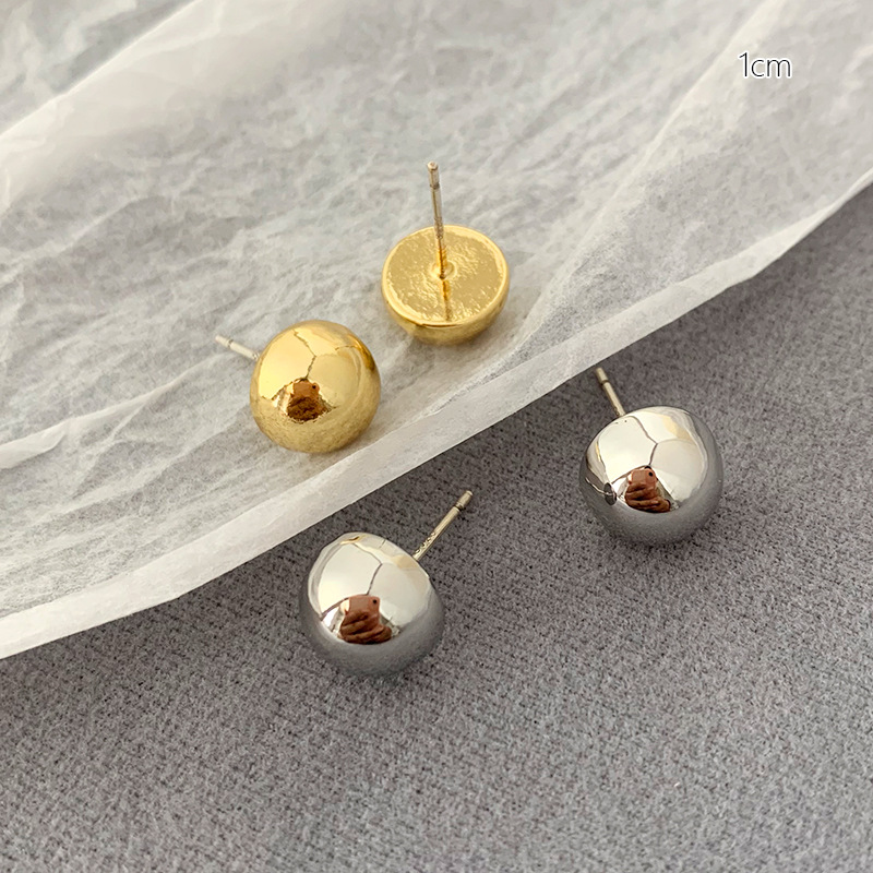 简约百搭金属半球高级感925银针耳钉光面拉丝半球耳环耳饰批发